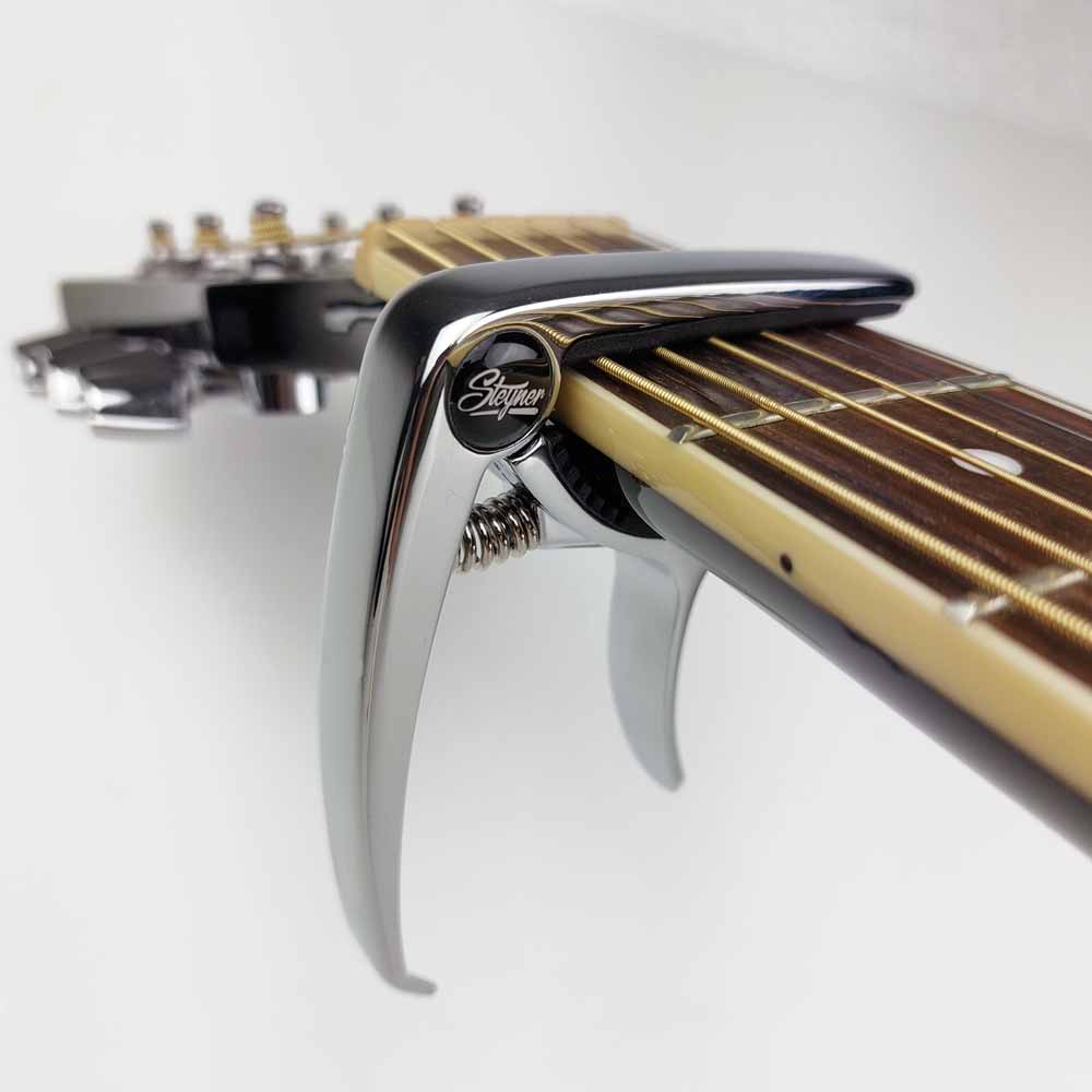 Comfortable and Easy to Use The Steyner Capo can be quickly and easily attached to the desired fret with just one hand. Therefore, it is also ideal for use on stage.