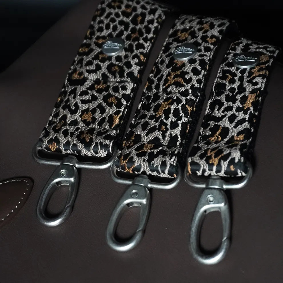 Sangle de sac élégante en noir avec motif paisley et mousqueton pivotant