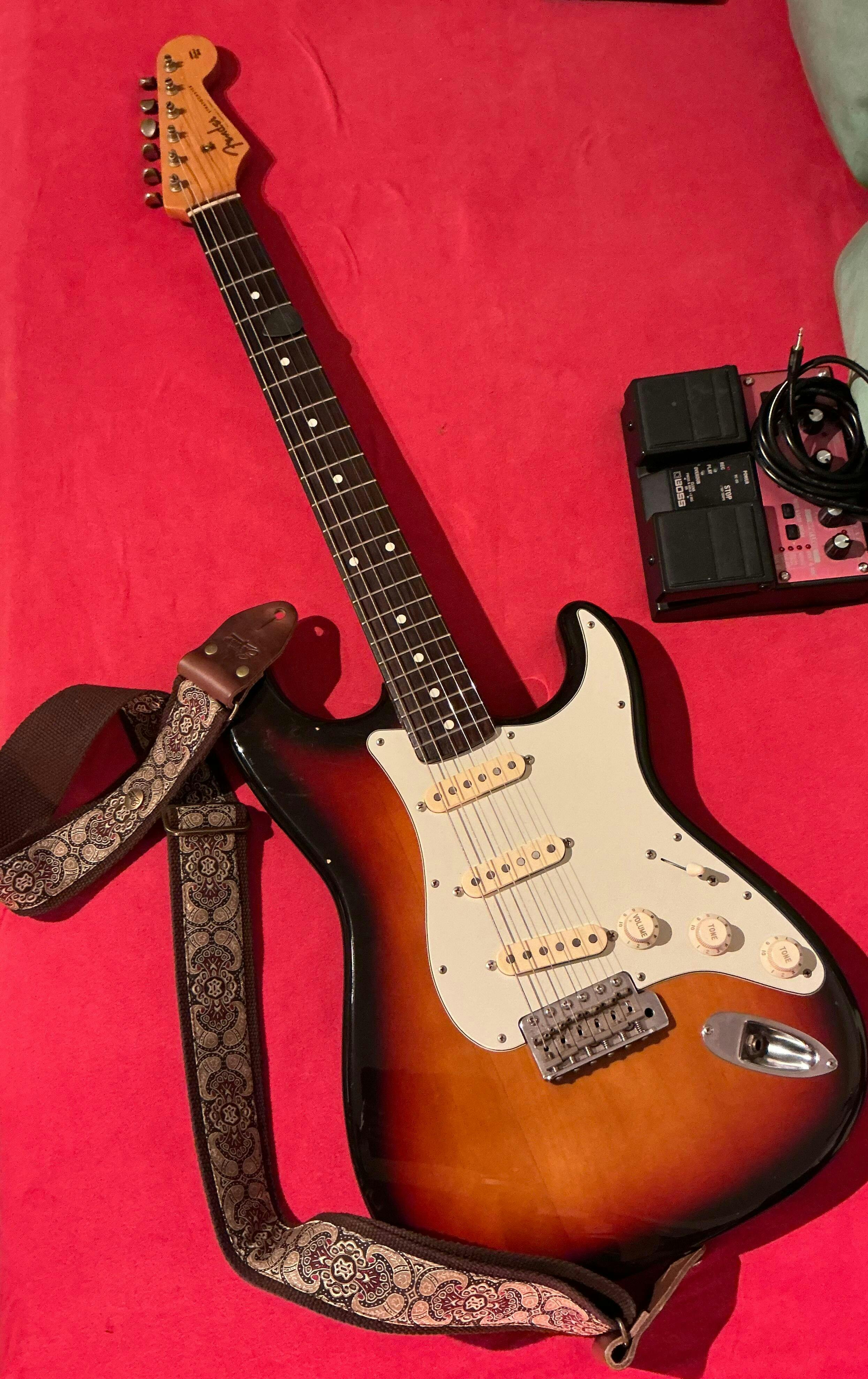 Retro Gitarrengurt mit rotem Hippie Muster
